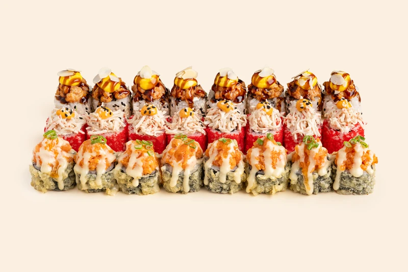 Темпура лосось (8 шт.), Запеченный с тунцом и лососем (8 шт.), Запеченный Калифорния(8 шт.)